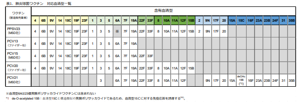 PCVP15,PCV20,PCV21(現時点では,PCV13は製造中止状態)を、ニューモバックスと同様に、5年ごとに接種しようなどと考えないでください。
